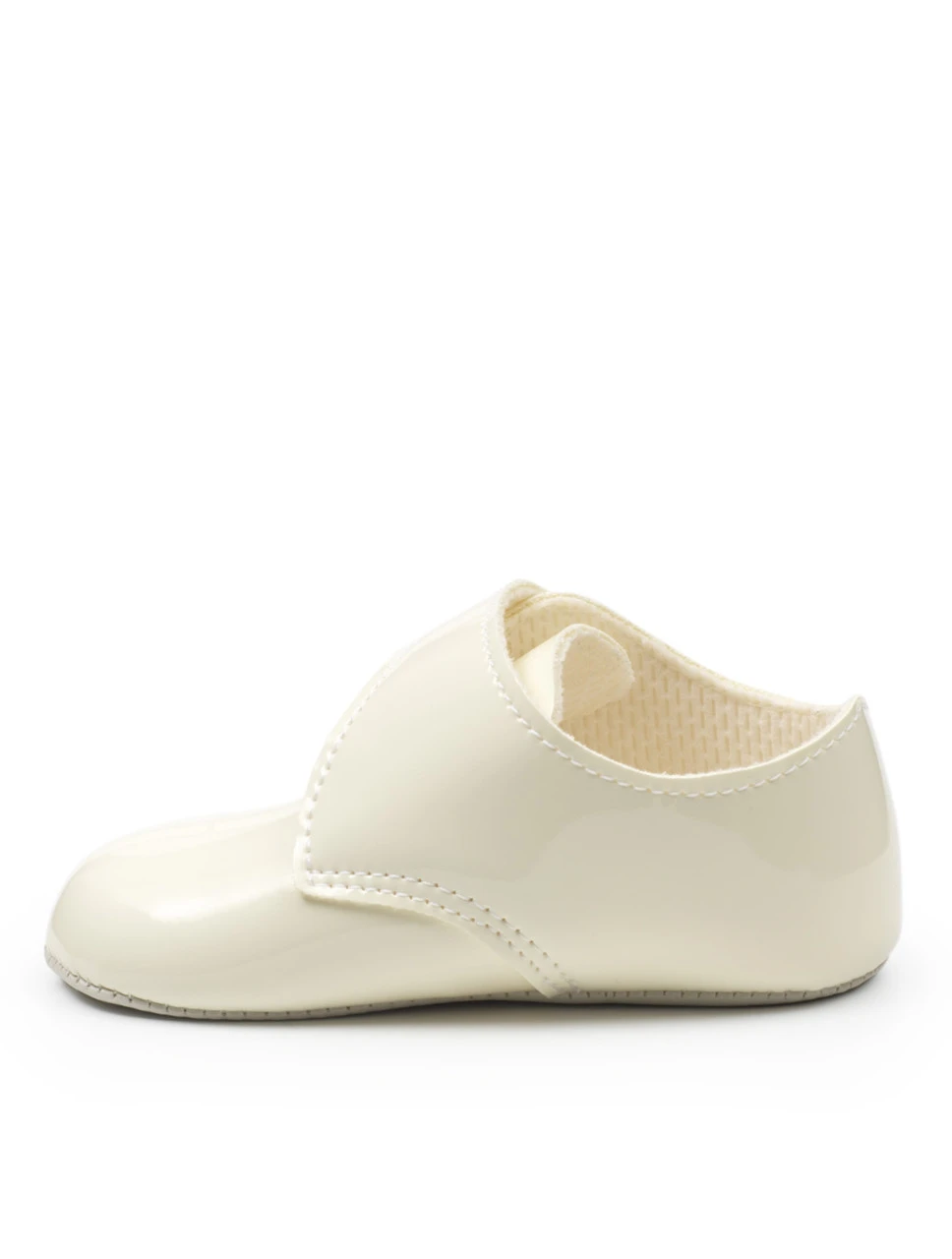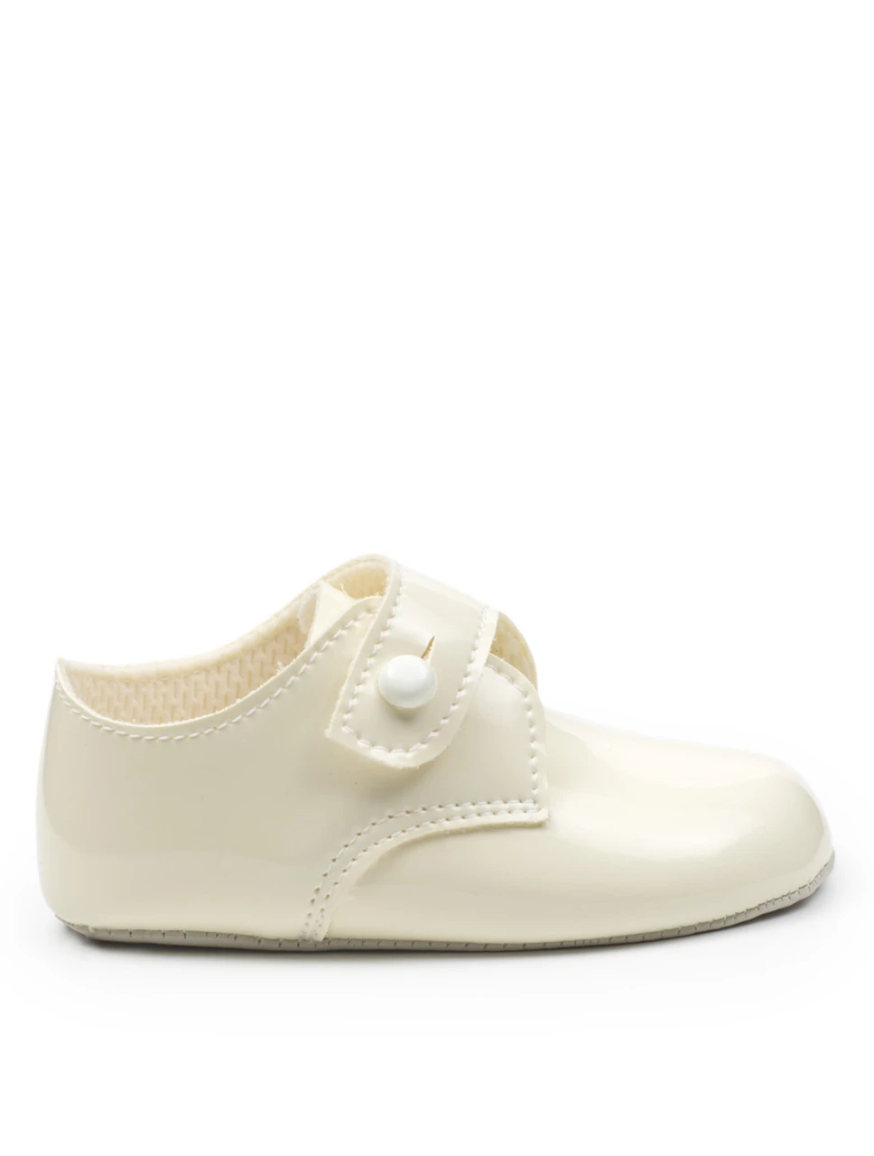 Early Days Baypod shoes are the ideal for your baby’s first formalwear look. The ivory patent, round toe shoe has a soft sole and single button fasten for essential comfort. The adorable shoe will make a perfect keepsake to cherish your baby’s first special occasion.