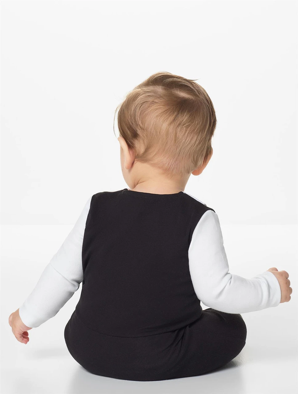 This charming tux style romper will have him looking like the cutest, smartest chap around. Featuring a fixed bow tie,contrast pocket square and a popper fastening, this smart romper is both stylish and easy to wear.