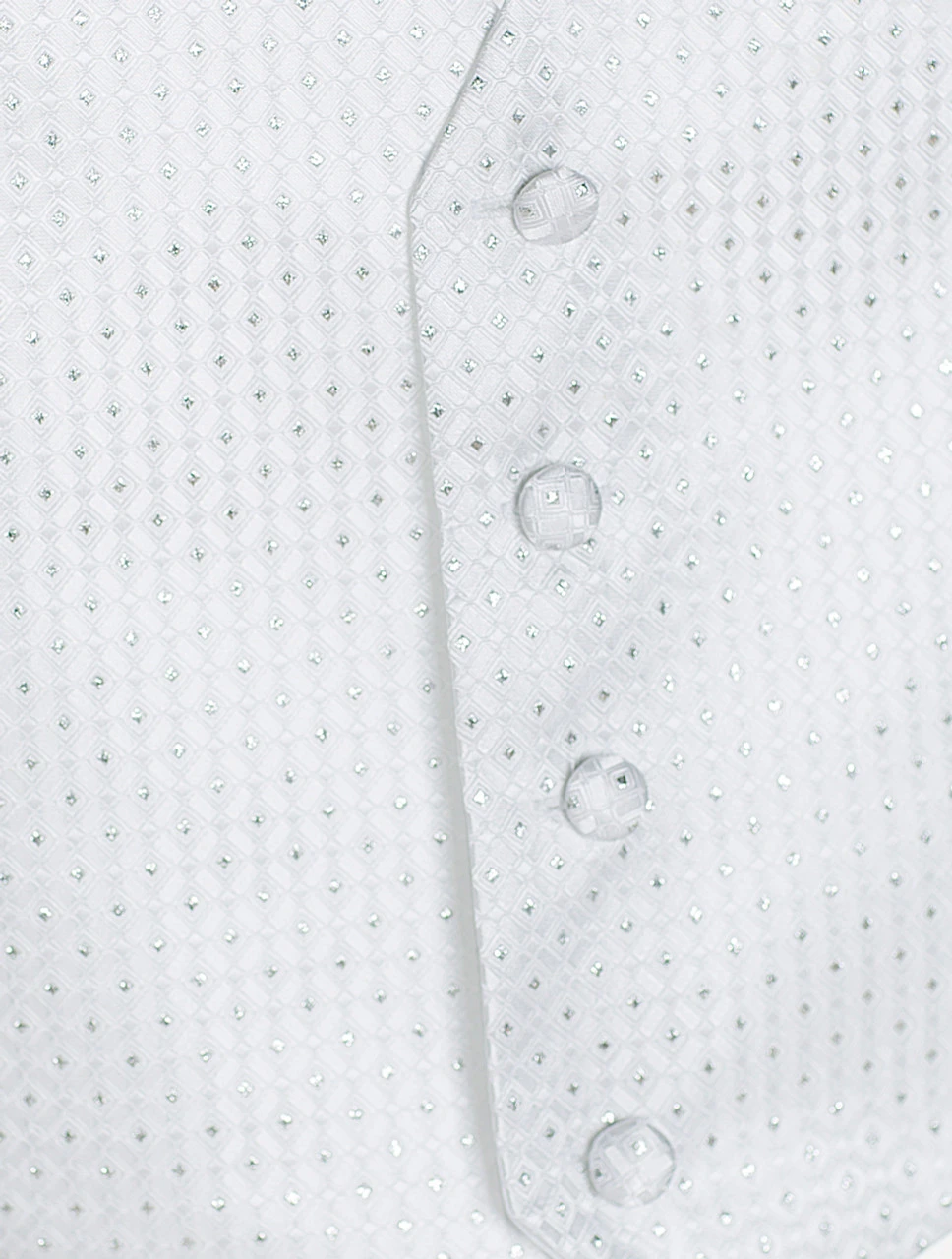 Keep your baby boy smiling in the Caspian four-piece outfit by Paisley of London. The traditional outfit features white wing collar shirt, grey trouser and classic white wedding waistcoat and cravat. With diamond pattern detailing and diamante encrusted cravat, the Caspian is the perfect choice for his christening, special occasion or page boy duties.