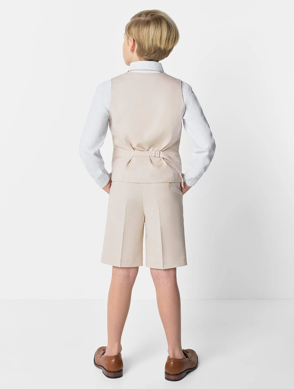 Boys Beige Waistcoat & Shorts Suit Set