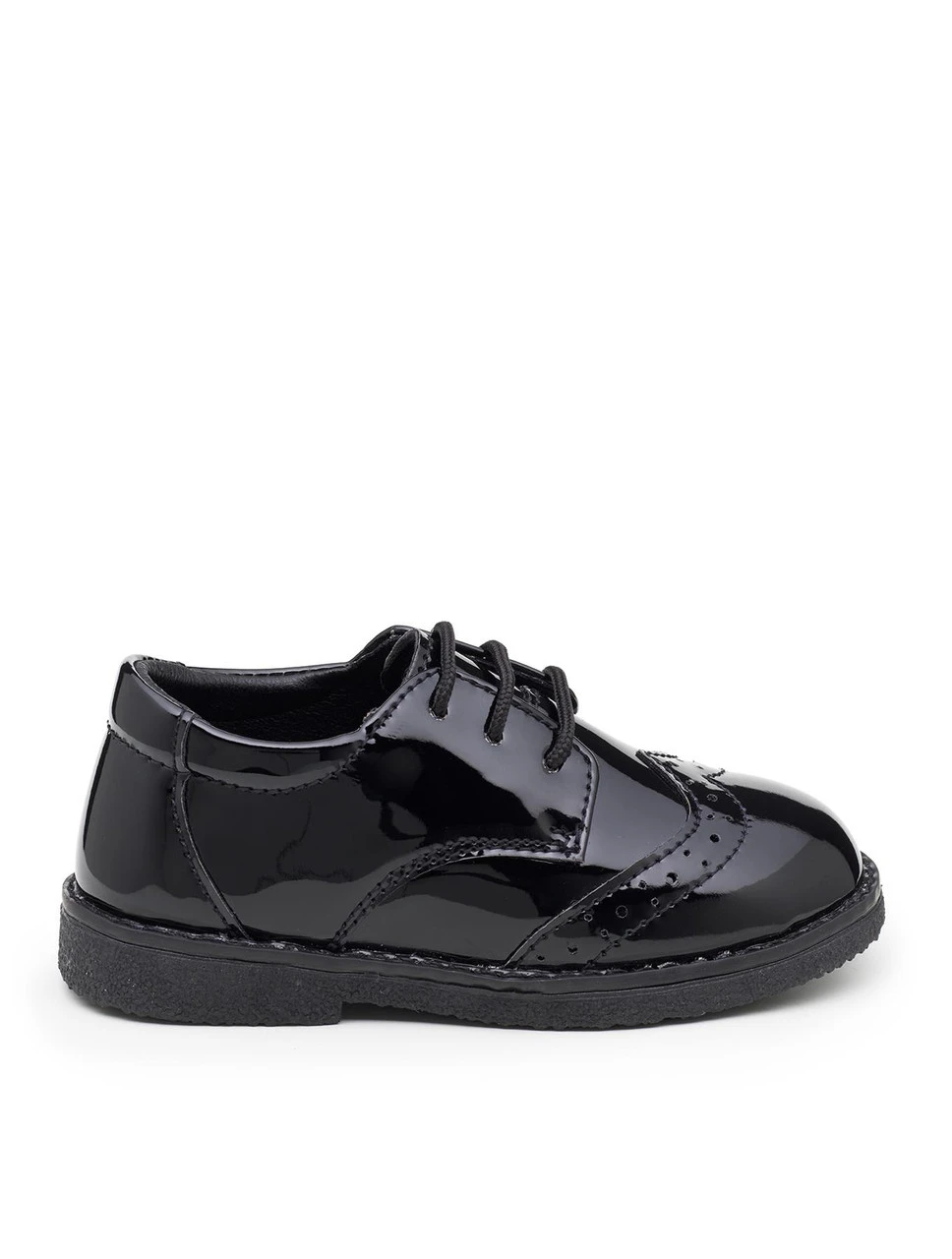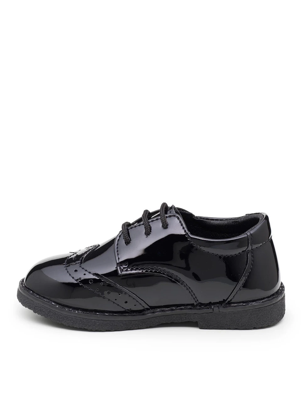 Finish off their look in our Roco lace up mini black brogue, which is available in four staple colours. The classic lace up design and round toe is inspired by the iconic Brogue style, perfect for any young gent and their occasion.