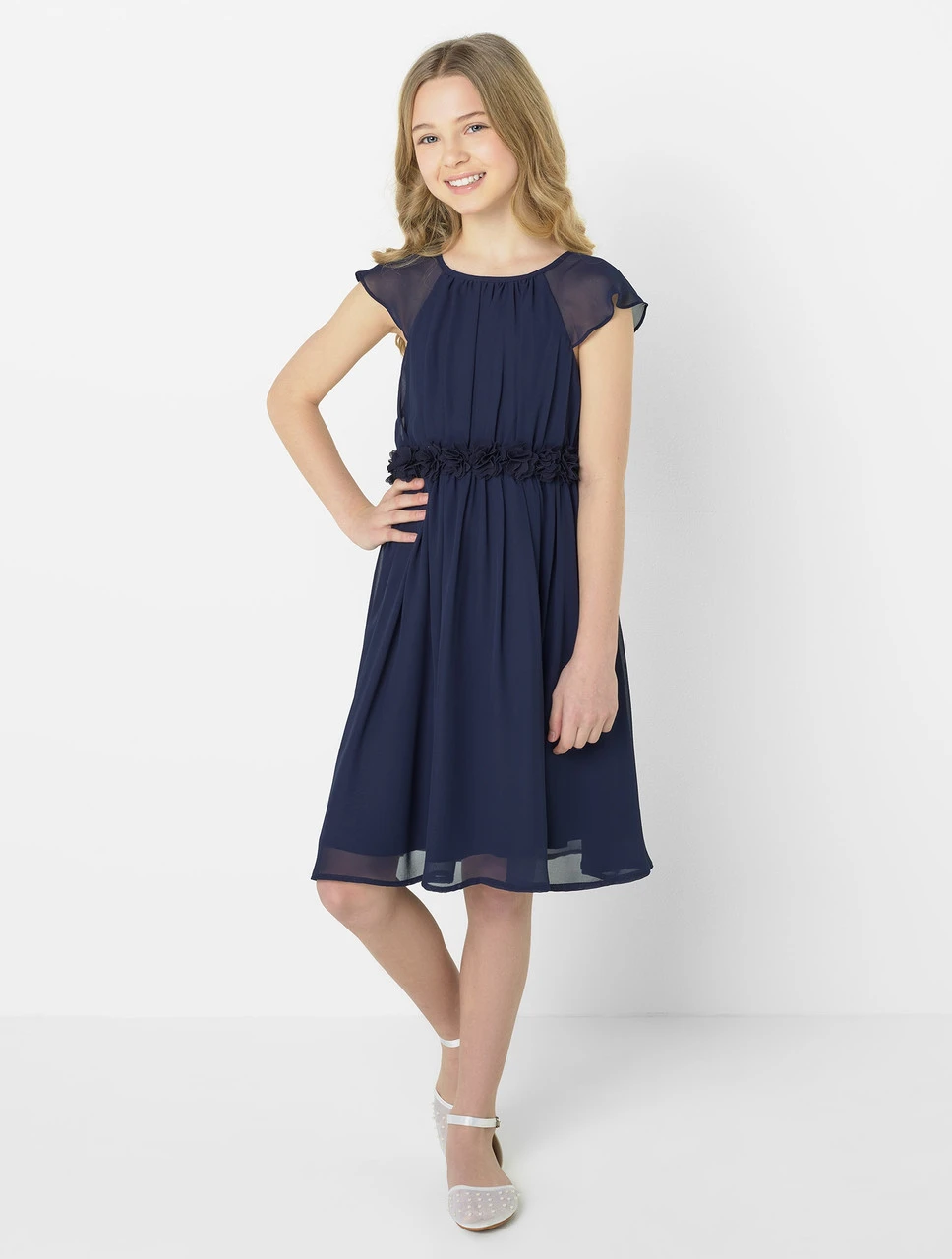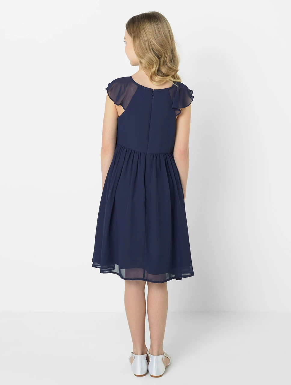 Designed by Chi Chi London, the Tamatha dress in navy proves that simple doesn’t mean any less stylish. The classic silhouette is decorated with 3D floral applique on the waistband and light flutter sleeves. The light and flowing dress in a rich shade of navy would be make for picture-perfect partywear or wonderful wedding guest attire.