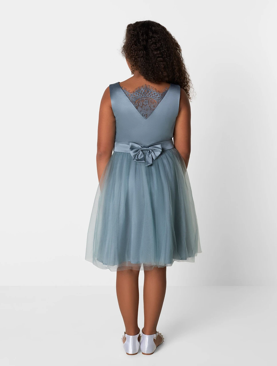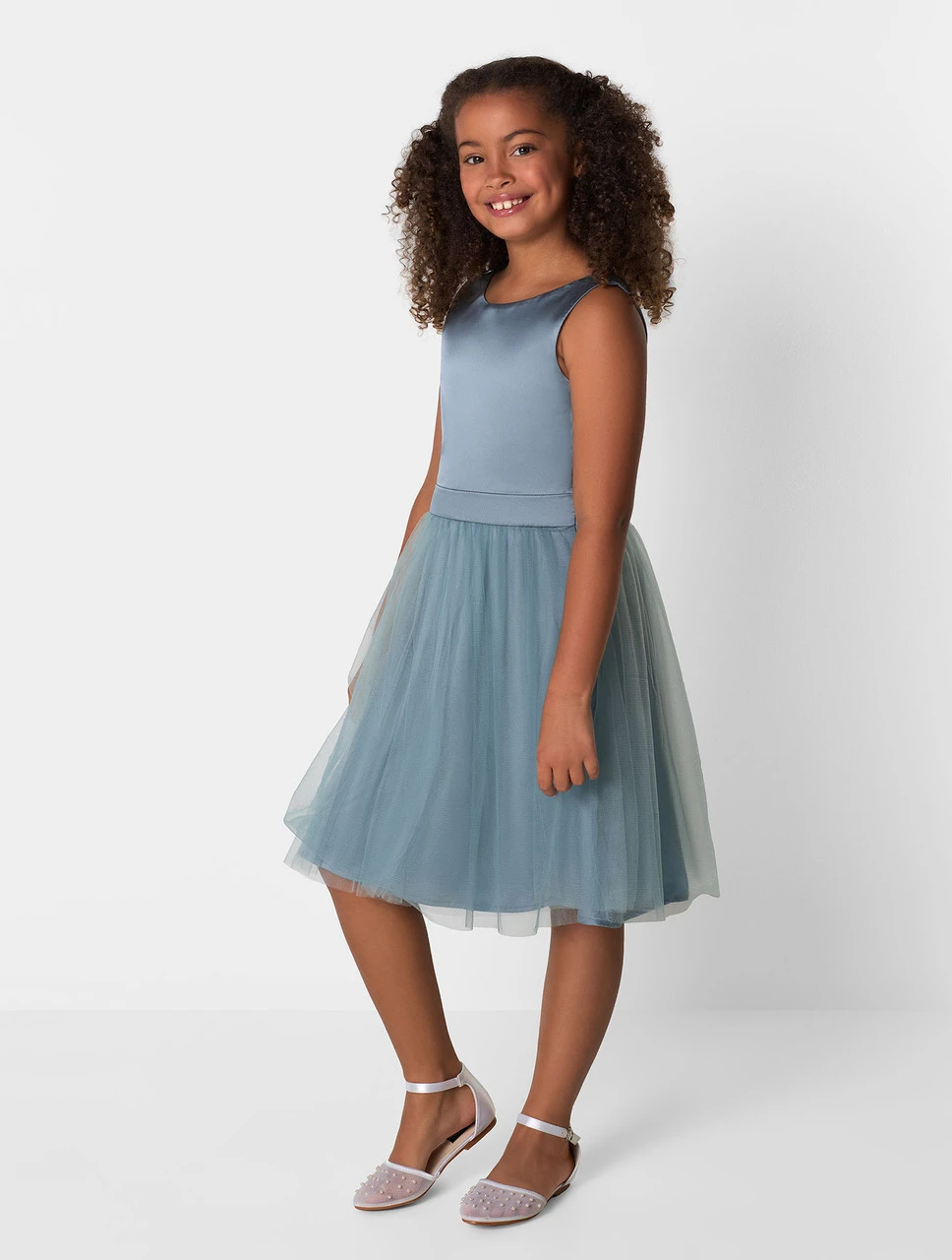 Chi Chi London’s Sage Dela dress is a party perfect piece. The satin bodice and tulle skirt creates a classic style for any party or junior bridesmaid duties. The stunning back detail makes this dress a one-of-a-kind design with delicate lace insert for super sophisticated styling.