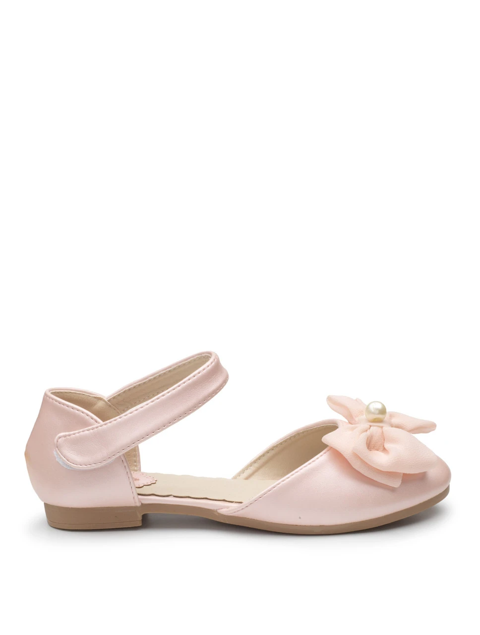 Showcasing a classic party silhouette, the Heather shoe in pink is perfect for styling any outfit this season. The cute crepe bow with center pearl detailing on the toe of the shoe adds a touch of pretty, keeping your little one looking darling all day long. The delicate silhouette and Velcro ankle strap fastening makes Heather suitable for all sizes.