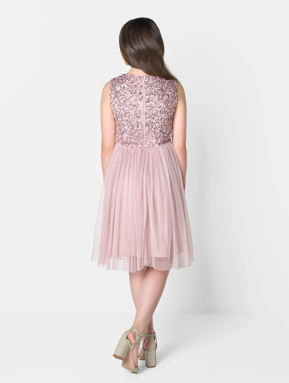 From the Maya Teen range, the Alina pink is the perfect choice for those extra special occasions. Designed by British brand Maya, the expertly designed sequin dress has mesh covering to keep the bodice comfortable! The coordinating tulle skirt in pink adds the perfect volume to make this outfit a modern must-have!