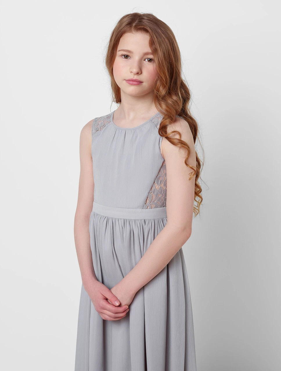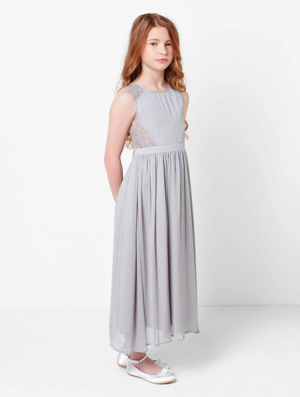 When it comes to any special occasion, the Harper dress has you covered. The dreamy grey design is ideal for party dressing or junior bridesmaid styling. The long chiffon style has lace back design, with modern cut out detailing.