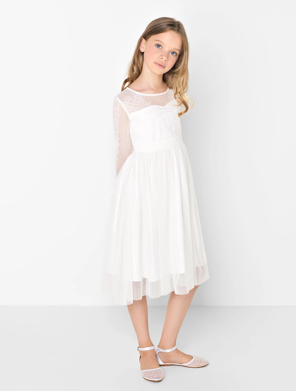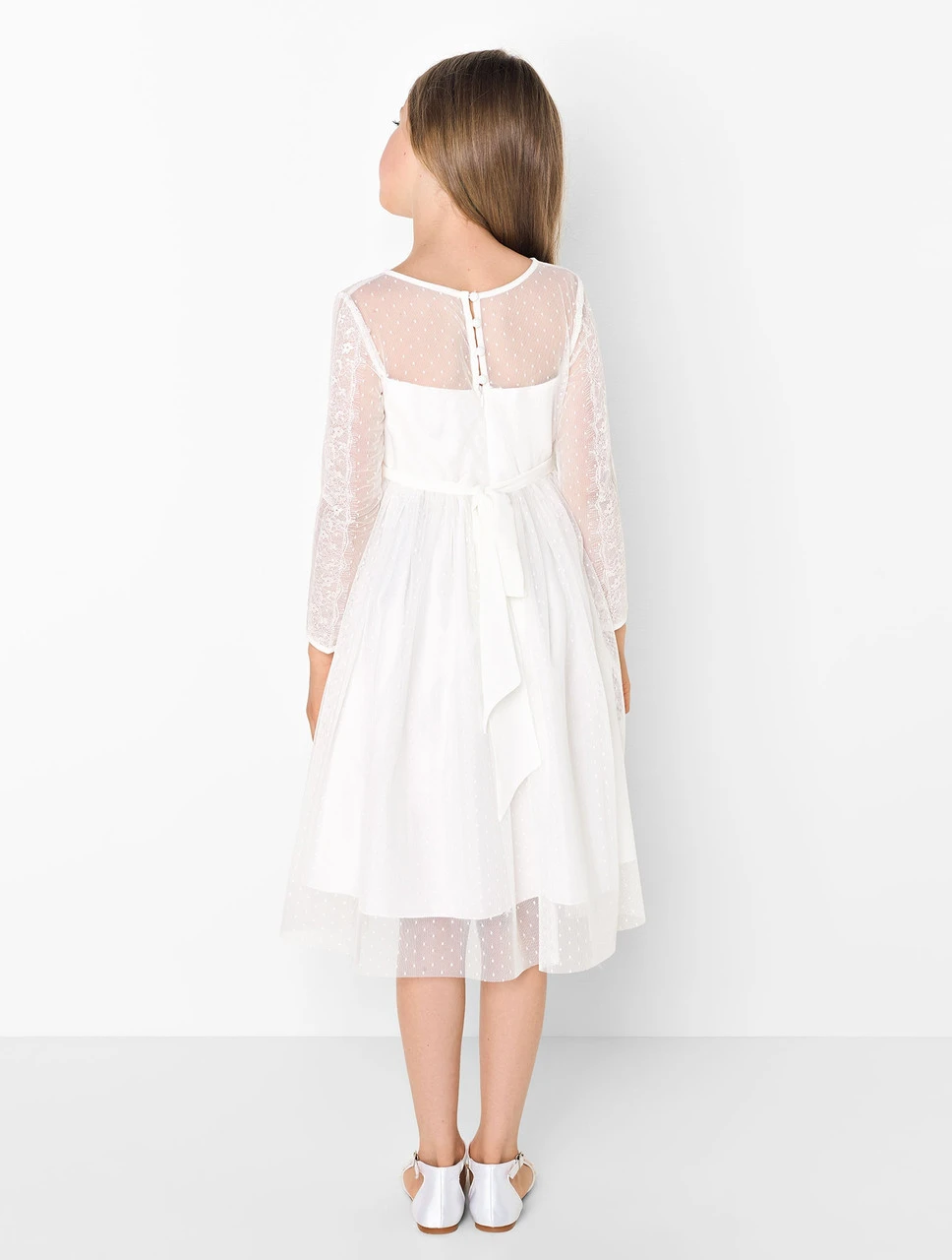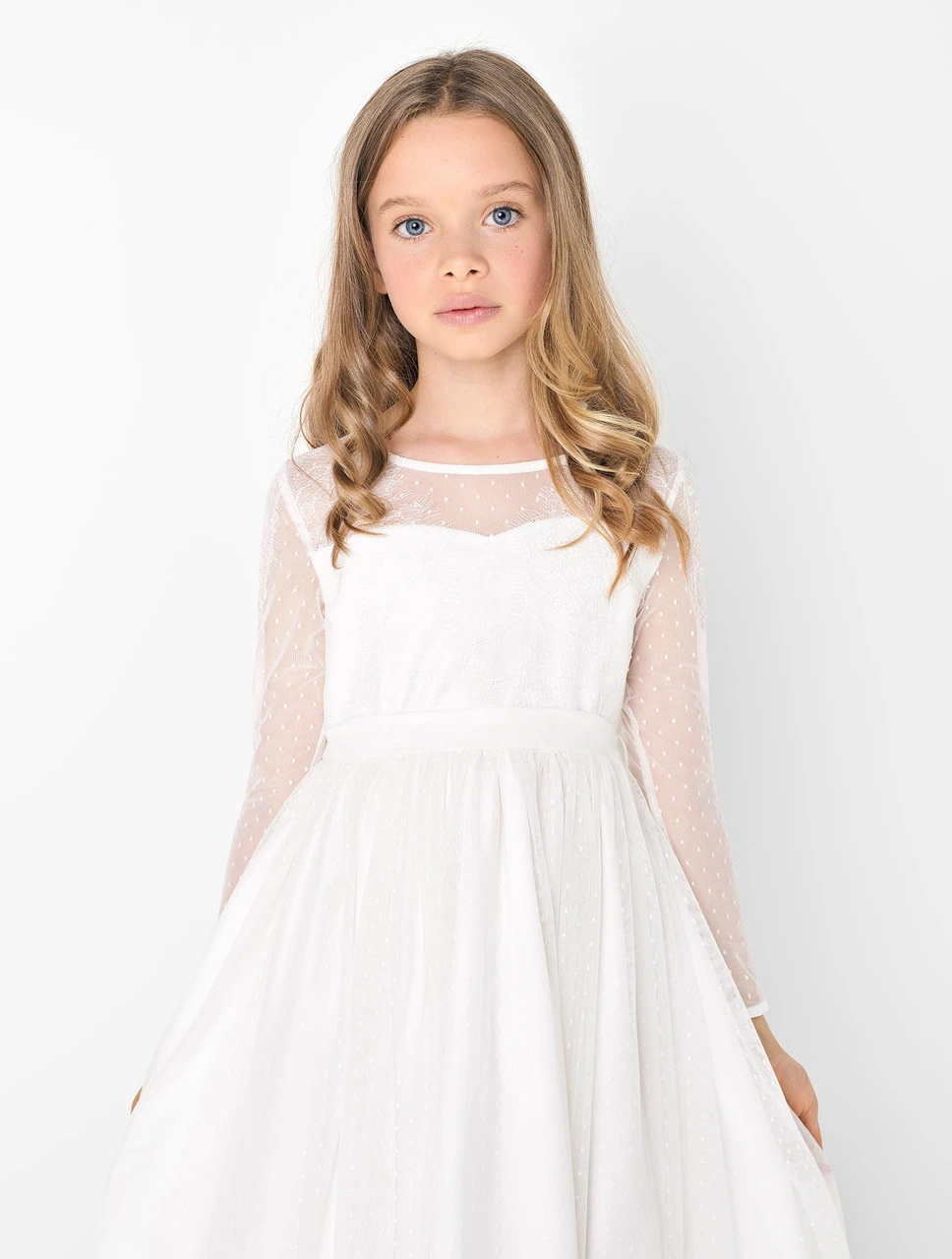 Dainty and delicate, the Ava dress is a beautiful choice for her special occasion. Perfect for communions, parties and special occasion dressing, the elegance is all in the details. The dobby spot design features lace and ladder detail along the length of the sheer sleeve and intricate lace on the body. With sweetheart bodice underneath, the Ava is Paisley of London’s staple piece from their Opulence collection.