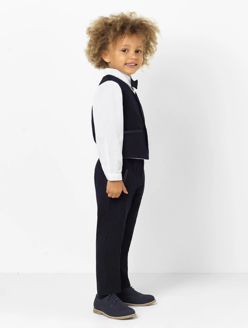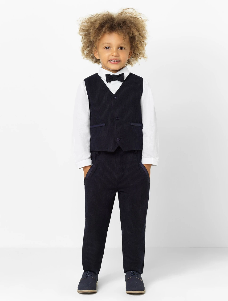 Exquisitely designed for the ultimate luxury look, the Jaco is a four-piece ensemble, featuring a waistcoat, shirt, trousers and bow tie. Reserved for special occasions, the super soft plush fabric is specially designed for the most luxurious appearance that will set your man apart from the crowd. With precise attention to detailing, the Patachou design is manufactured in Portugal to retain authentic formalwear craftsmanship.