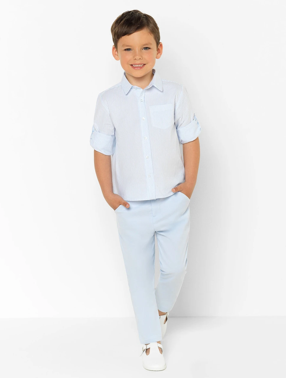 Get his summer look sorted with the super cool Robert outfit. Ideal for smart/casual events, the Patachou design will keep him looking his best all summer long. With trendy seersucker pattern, the cotton shirt perfectly coordinately with the cotton/elastane trousers for effortlessly cool summer dressing.