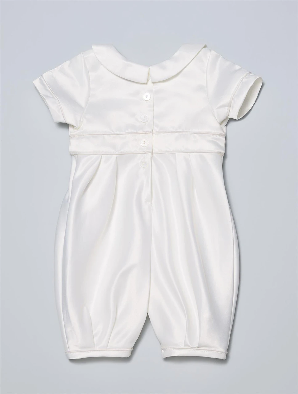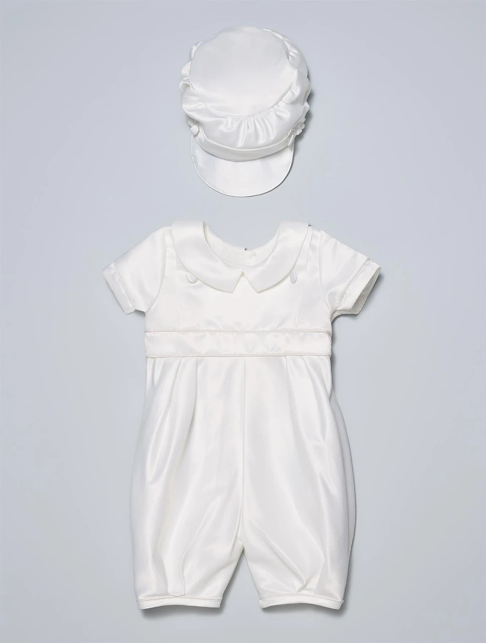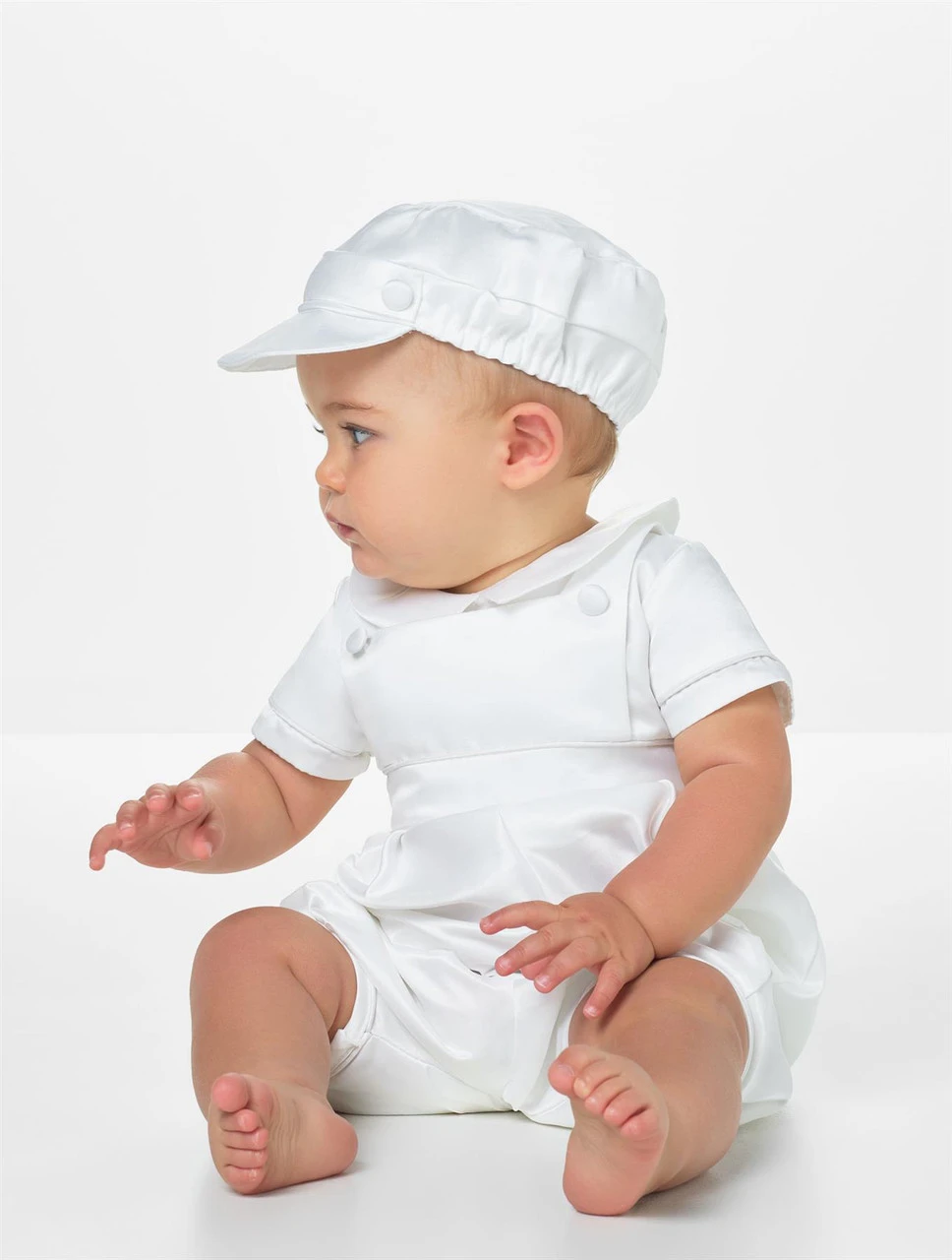 Introducing the Rome special occasion romper and hat set, as part of Roco’s exclusive online range. Designed in a white satin, the smart romper features a peter pan collar, feature piping and faux button detail. Designed with easy dressing in mind, the Rome combines comfort and style for a super smooth special occasion.