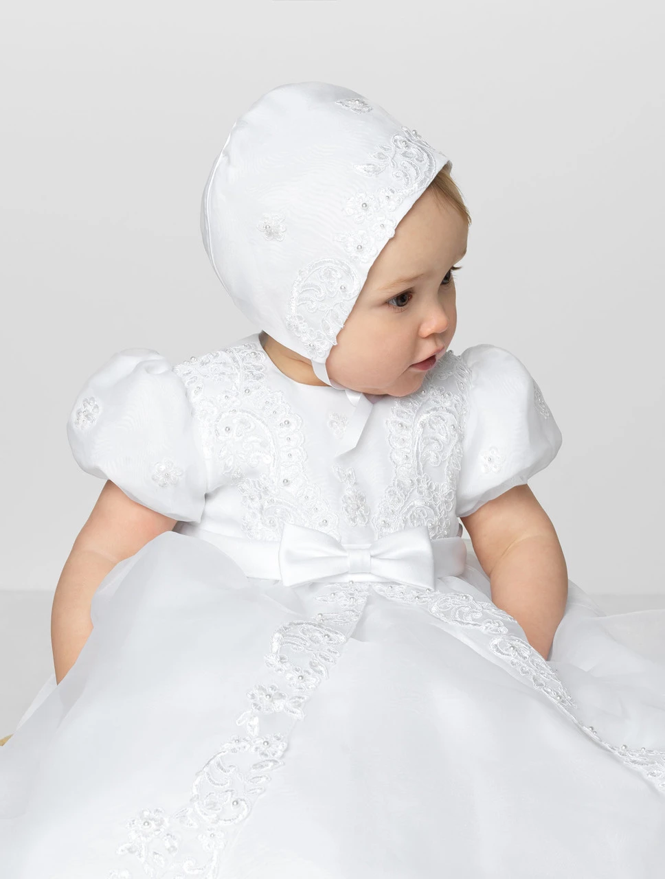 Sarah Louise Girls White Christening Gown
