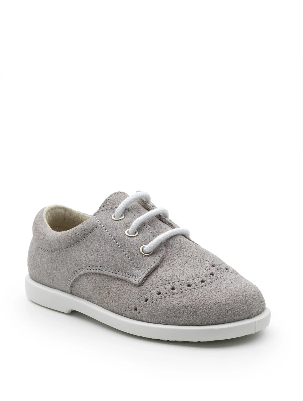 Step up his formal look with the Earl shoe by Xiquets. Crafted in premium suede fabric, the rich grey colouring is an essential choice to keep your young one on trend. The urban colour complements the crisp white sole and lace fastening, creating a fantastic fusion of authentic style and contemporary aesthetic that will keep your young one looking his best at any special event.